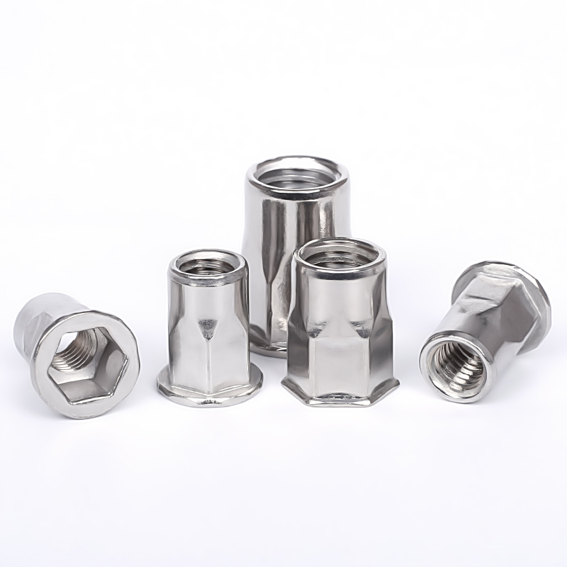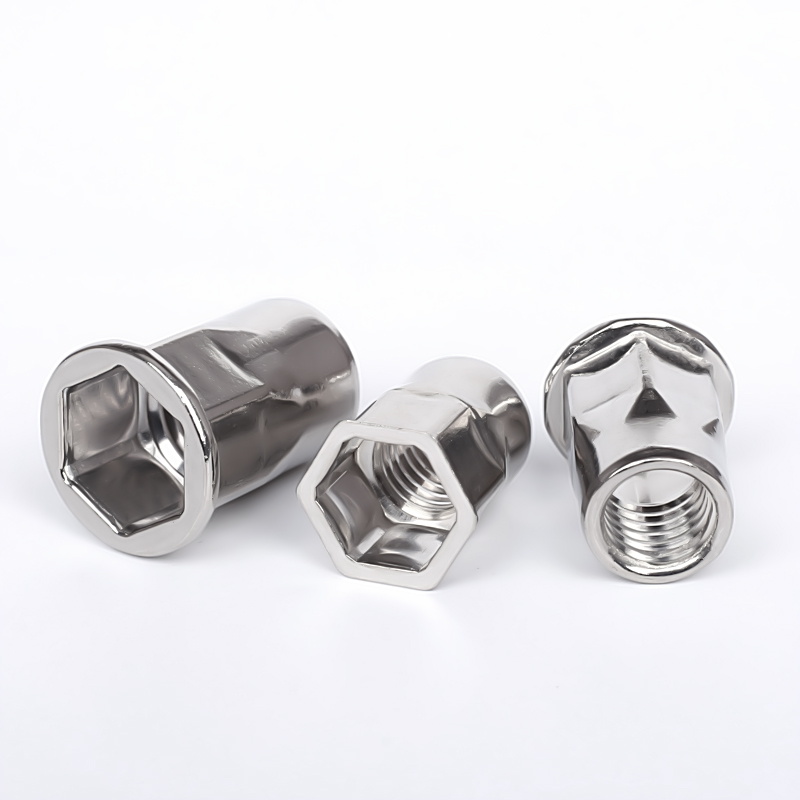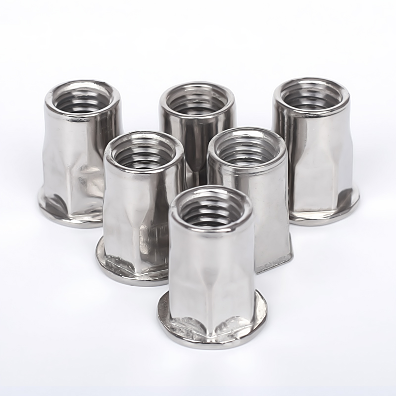 鉚螺母,又稱拉鉚螺母,拉帽,用于各類金屬板材、管材等制造工業(yè)的緊固領(lǐng)域,廣泛地使用在汽車、航空、鐵道、制冷、電梯、開(kāi)關(guān)、儀器、家具、裝飾等機(jī)電和輕工產(chǎn)品的裝配上。為解決金屬薄板、薄管焊接螺母易熔,基材易焊接變形,攻內(nèi)螺紋易滑牙等缺點(diǎn)而開(kāi)發(fā),它不需要攻內(nèi)螺紋,不需要焊接螺母、鉚接牢固效率高、使用方便。