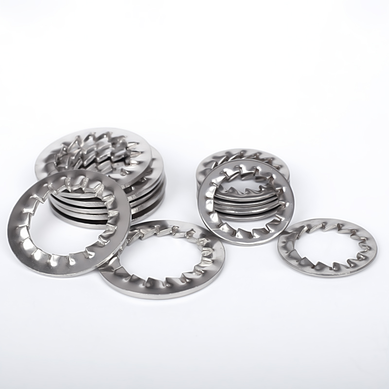 鋸齒鎖緊墊圈是跟螺母配合裝在螺栓上使用的,它的作用類似于彈簧墊,可以起到鎖緊防松的作用。鋸齒鎖緊墊圈分為內(nèi)鋸齒鎖緊墊圈和外鋸齒鎖緊墊圈